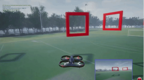 The goal of the autonomous agent (i.e., UAV) is to navigate through a set of gates with unknown locations disposed in a circular track in the AirSim simulator, as presented in Figure 1.