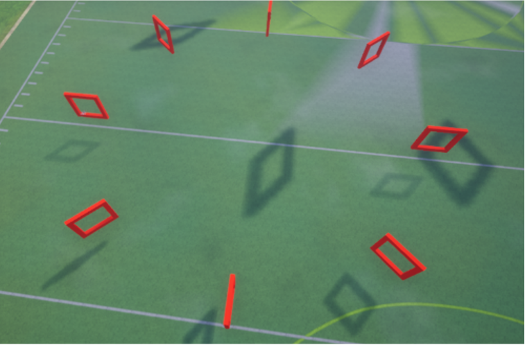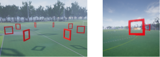 The goal of the UAV is to navigate through a set of gates with unknown locations, forming a circular track. In AirSim, a track is entirely defined by a set of gates, their poses in the space, and the agent navigation direction. For perception-based navigation, the complexity of a track resides in the “gate-visibility” difficulty